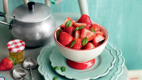 Laissez macerer les fraises dans la preparation de balsamique blanc miel jus de citron et jus dorange pendant une heure avant dajouter les feuilles de basilic. Recettes de fraises au basilic.